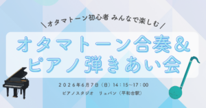今回は「通常演奏枠」と「コンクール・発表会応援枠」が選べる、新しいスタイルの弾きあい会です。 コンクール・発表会応援枠では、なんちゃって影アナなどでコンクールっぽさを演出します! 休憩中にはお茶菓子もご用意していますので、演奏と交流を楽しみましょう♪